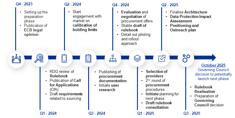 ECB. (2023c). Eurosystem’s preparation phase for a digital euro – Objectives and work plan. https://www.ecb.europa.eu/pub/pdf/other/ecb.digitaleuropreparationphaseobjectives202310~e17024e1a0.en.pdf