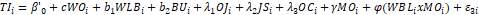 The estimation results in Table 7 indicate that WO, BU, OJ, JA, and cMO exert significant influences on TI. The regression coefficients of WO (0.2806), BU (0.5073), and OJ (0.1722) are positive and statistically significant (p < 0.05), implying that, holding other factors constant, increases in these variables lead to higher TI. The interaction term between WBL and MO (cWBL_cMO) is negative but statistically insignificant, suggesting that intrinsic motivation does not meaningfully moderate the relationship between WBL and TI among accountants in this sample. However, the positive and significant coefficient of cMO indicates that individuals with higher intrinsic motivation tend to show stronger attachment and lower propensity to leave, even though the moderating effect itself is not clearly evidenced.