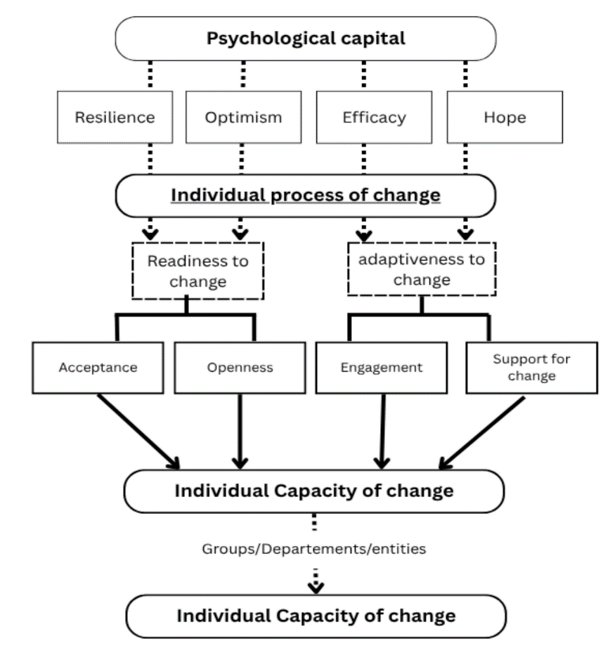 Individual change capacity OR individual change capacity AND organizational change; Individual capacity AND PsyCap; Individual capacity AND organizational change capacity; Individual capability; individual ability to change; capacity of individuals in organization |